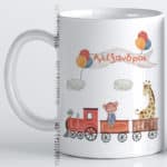 Παιδική μπομπονιέρα κούπα – δώρο βάπτισης τελειες και για γεννέθλια σε παιδικο παρτυ .Το θέμα κονκάρδες βάπτισης τρενάκι ζωάκια μπαλονάκια κωδ. 0010 προσωποποιημένη κούπα με όνομα .Πρωτότυπη κούπα λευκή πορσελάνης άριστη ποιότητα με εκτύπωση ανεξίτηλη .Προσωποποιημένη με το όνομα του παιδιού και την ημερομηνία βάπτισης.