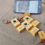 Keyring with Smartphone stands in bamboo. As bamboo is a natural material, the color per item can vary.