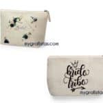 Τσάντα ομορφιάς σε 100% βαμβακερό . Με κλείσιμο φερμουάρ και λαβή μεταφοράς. 100% βαμβάκι