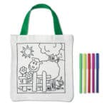 Cotton tote bag with 5 colouring pens. 200gr/m².