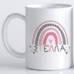 Παιδική μπομπονιέρα κούπα – δώρο βάπτισης τελειες και για γεννέθλια σε παιδικο παρτυ .Το θέμα κούπα βάπτισης ουράνιο τόξο σε απόχρωση του ροζ με καρδούλες προσωποποιημένη με όνομα κωδ.005 προσωποποιημένη με το όνομα του παιδιού και την ημερομηνία βάπτισης.