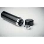 Double wall stainless steel insulating vacuum bottle. It has an LED touch thermometer incorporated in to the top of the lid and tea infuser inside. 1 rechargeable CR 2450 battery included. Leakproof. Capacity: 450 ml. Leak free.