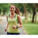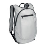 Sports backpack in 210D polyester with one main compartment and front pocket.