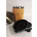 Double-wall Stainless Steel tumbler with bamboo case and moveable drink hole.
