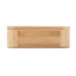 Bamboo lunch box with removable divider and attachable elastic nylon strap. Dry food only. Capacity: 1000ml.