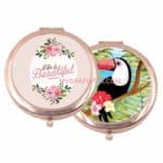 Μεταλλικό καθρεφτάκι σε ροζ χρυσό χρώμα, ανοιγόμενο με δύο καθρέφτες.