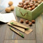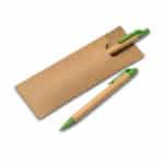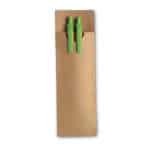 Περιγραφή:Paper barrel pen set which includes a push type ball pen and mechanical pencil presented in a recycled paper pouch. Blue ink.