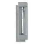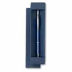 Περιγραφή:Push button ball pen in aluminium presented in matching paper box. Blue ink.
