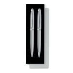 Περιγραφή:Aluminium twist pen and pencil set each with stylus in silver gift box. Blue ink.